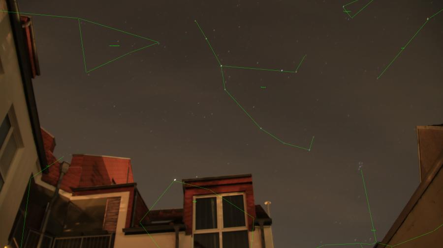Da es in unseren Breiten immer Streulicht in der Atmosphäre gibt, kann man sich so ranprobieren, wie hell man das Bild haben will, also Sterne und Hintergrund