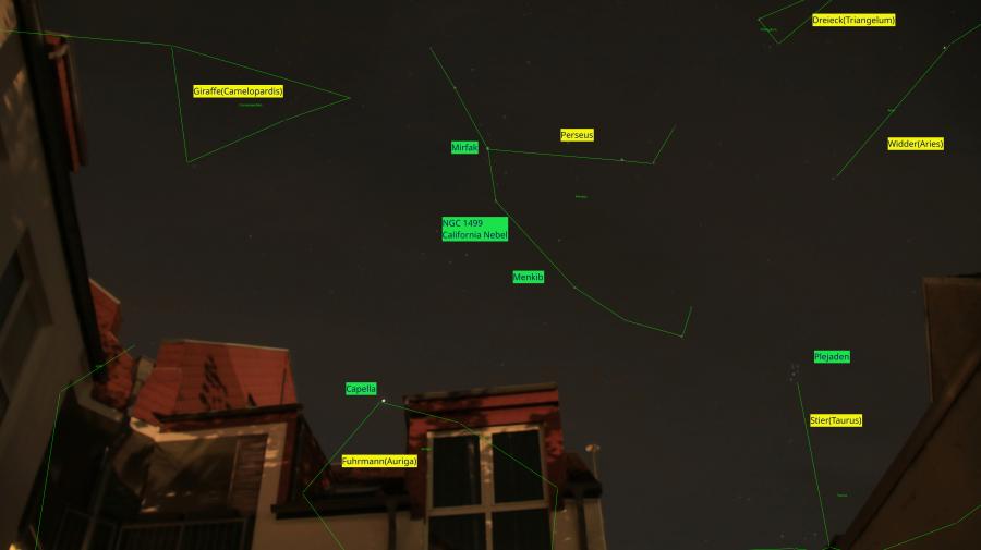 Capella mit Plejaden Ost-Süd Bereich Garten