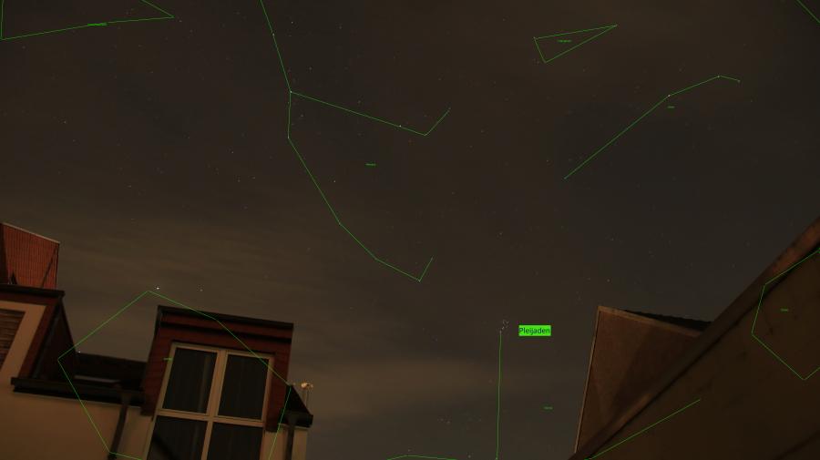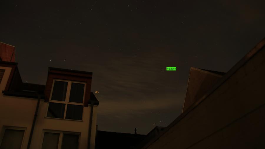 Da es in unseren Breiten immer Streulicht in der Atmosphäre gibt, kann man sich so ranprobieren, wie hell man das Bild haben will, also Sterne und Hintergrund