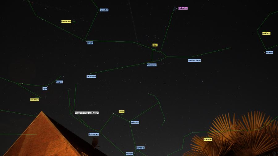 Da es in unseren Breiten immer Streulicht in der Atmosphäre gibt, kann man sich so ranprobieren, wie hell man das Bild haben will, also Sterne und Hintergrund